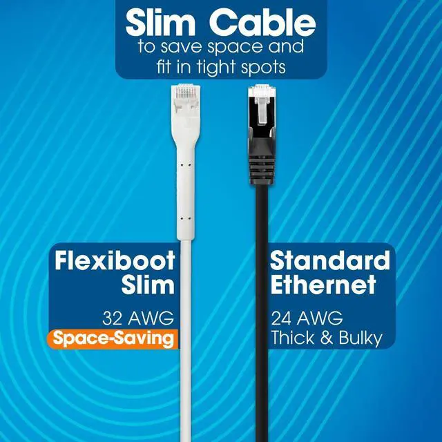 Convenient Design: Ultra-thin format simplifies cable management in tight spaces, with flexible connector covers that protect RJ45 plugs and allow easy bending to the desired angle. Whether that is 90 degree right angle or 45 degree. the cable bends to your needs.