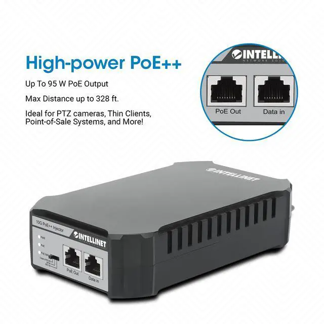 MOST POWERFUL & HIGHEST BANDWIDTH INJECTOR: IEEE 802.3 bt-compliant Injector offers PoE++ (4PPoE) Output & 10 Gigabit Connection. Delivers up to 95 W via Cat5e/6/6a cables (Cat6/6a required for 10Gbps) to a Powered Device (PD) where it's needed in the network; Supports 10/100/1000/2500/10000 Mbps data rates with distance to the PD up to 328 ft. (100 m). ^^ WIDE APPLICATION/COMPATIBILITY ^^