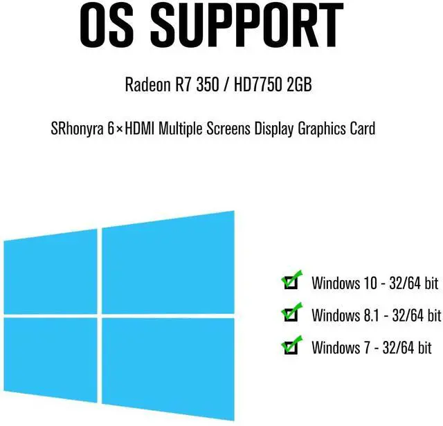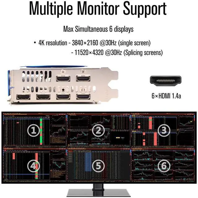 Range of OS Support: This 6HDMI multiple monitors graphics card works well with a wide range of operating system, including Windows 10 32/64 bit, Windows 8.1 - 32/64 bit, Windows 7 32/64 bit ^^ 6