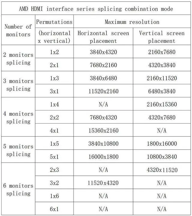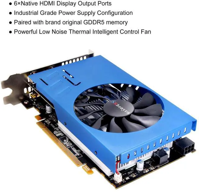 ^^ PCIe Bus Powered: This multiple display video card only draws power through PCIe 3.0 x16 lane, no need external connector, max power consummption 55 Watts, low consumption, stable performance. ^^ R7350 GPU, 2GB 128bit GDDR5 high-speed video memory. Doesn't support horizontal & vertial mode 6 screens spicing. Doesn't support vertical & upright mode 6 screens spicing. If you have any questions, please contact us freely through message, we will reply within 24 horus.