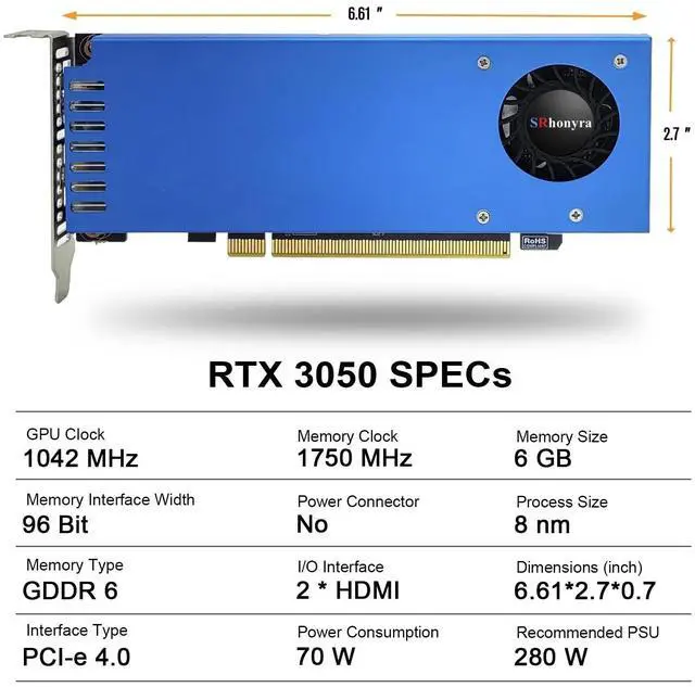 DLSS Support: Built on the 8 nm process, and based on the GA107 graphics processor, the SRhonyra RTX 3050 6GB low profile graphics card supports Ray Tracing and DLSS, if you want to experience modern gaming without spending a fortune.