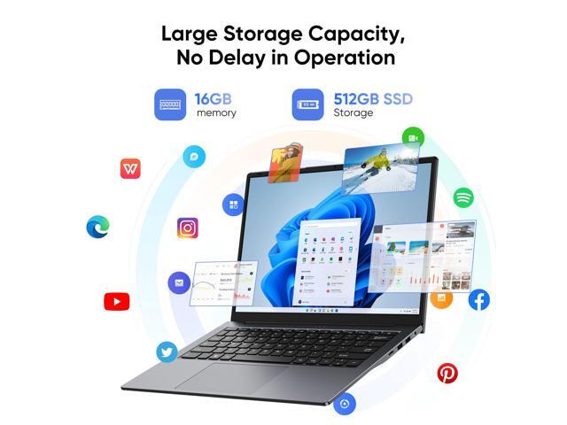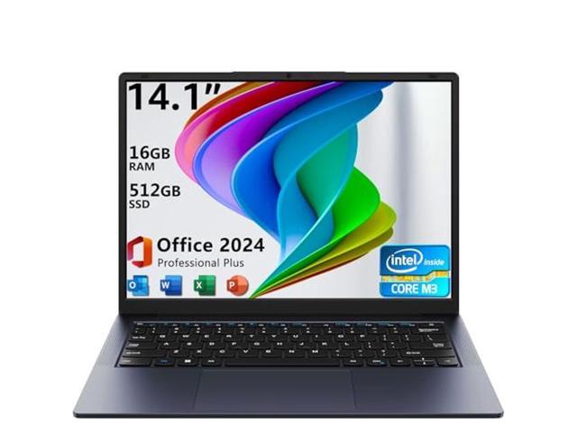 AE86 14.1" Laptop 16GB RAM 512GB SSD, QHD (2160x1440) Display, Intel Core m3 8100Y (Beat Intel i3-5005u), Windows 11 Pro Notebook Computer with HDMI, Type C, Long Battery Life, MS Office 2024 - Gray