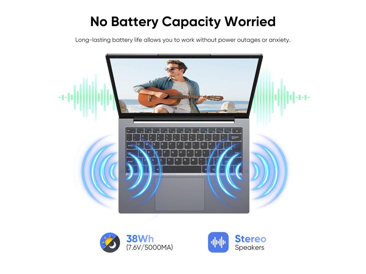 - [(All-Day Battery Life)] 38Wh battery + 12V/2A fast charging keeps you powered for hours, with dual speakers, HD camera, and US keyboard included.