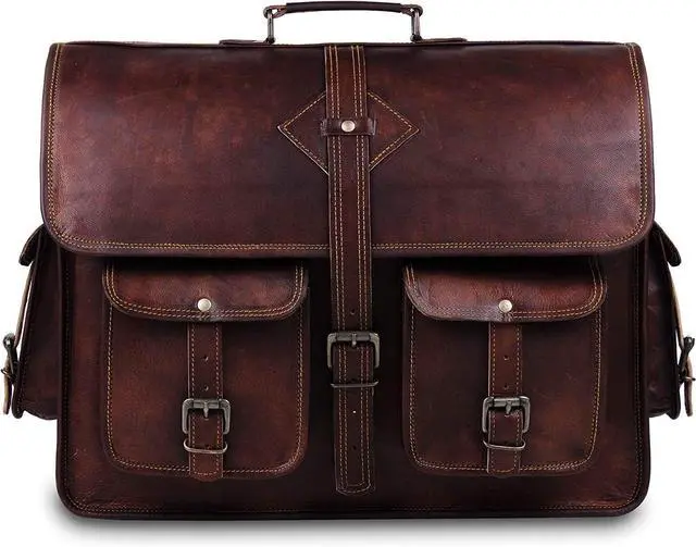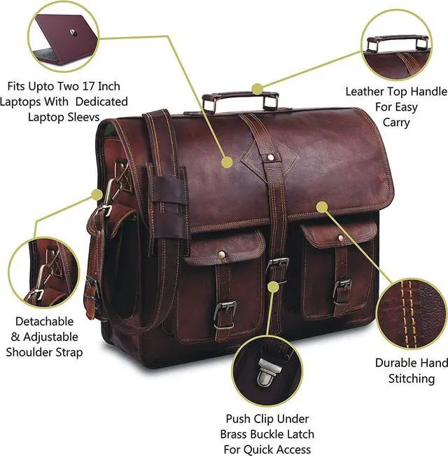 Hide) Protection: Laptop padding to keep laptop safe. Unisex leather laptop bag messenger bag satchel in dark brown. product have leather smell but its purely leather not bad smell when you use it it will be removed