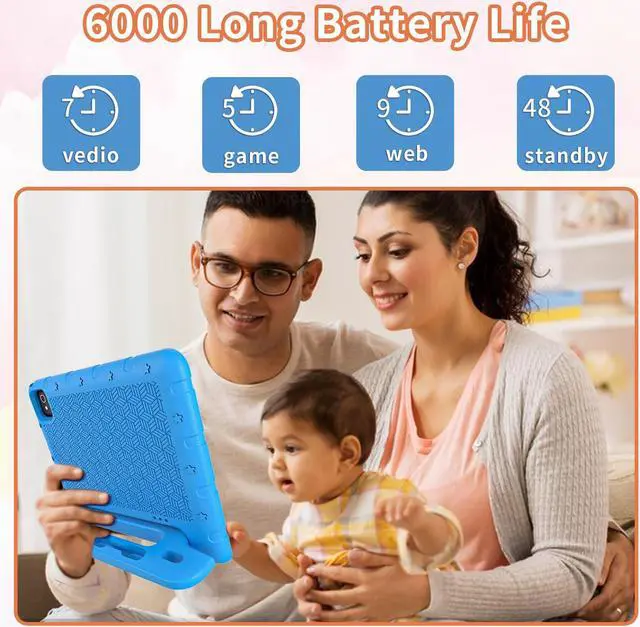 Kids Tablet With Stand: This toddler tablet comes with a sturdy and durable kids' bumper case that protects against drops and bumps, and can withstand all of your kids' adventures. Tablet for Kids also comes with an adjustable stand that allows kids to get a great viewing experience from all angles.