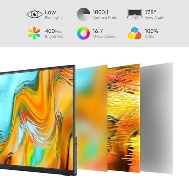 FHD 1200P Portable Monitor - This ForHelp Portable Monitor for Laptop with a A Full HD 1920*1200 resolution and 16:10 aspect Ratio, advanced IPS Matte screen support 178degfull viewing angle,100% SRGB Gamut 400cd/m2 Brightness With a 60Hz resolution, outstanding image quality, and high screen brightness, it delivers stunning visuals. No flickering, eye-care, and make it easier to watch for a long time,