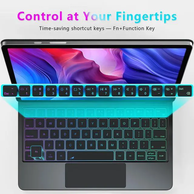 [Multi-Touch Touchpad]: The built-in touchpad accurately recognizes single-finger, two-finger, and three-finger gestures, allowing for quick and easy navigation of the iPad. The 18mm key travel design provides better hand movement space. It also with a full row of iPadOS shortcuts, making everyday tasks fast and simple. Enjoy enhanced productivity with the Samsung S9 tablet case with keyboard!