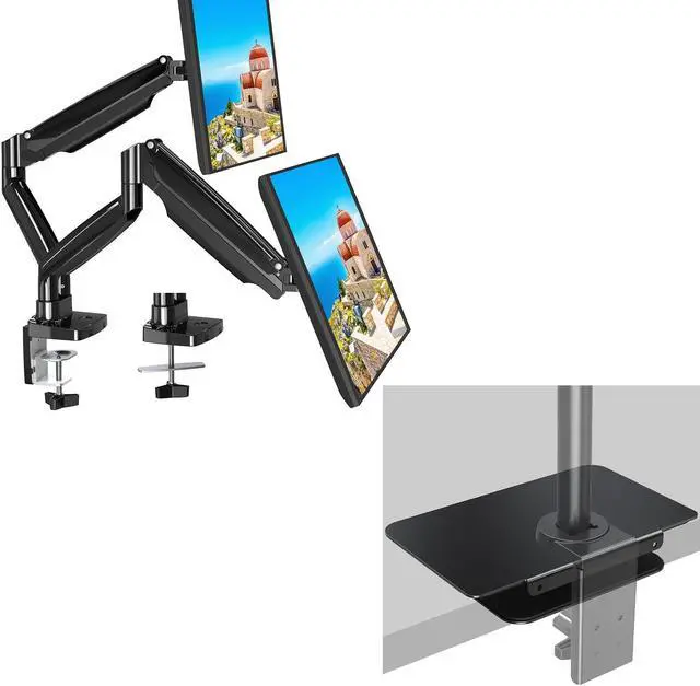 MOUNT PRO Dual Monitor Desk Mount fits 22" to 35" Ultrawide Computer Screen with Mount Reinforcement Steel Bracket Plate Fits Monitor Arm and Monitor Stand C Clamp Installation