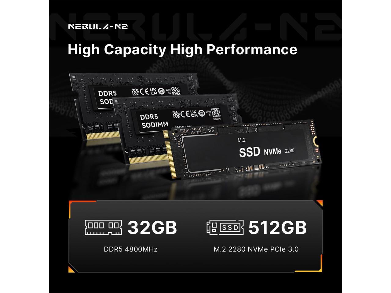 - High-Speed Memory and Storage:Ryzen 7 6800H mini gaming pc standard with 32GB DDR5 4800MHz memory and 512GB PCIe 3.0 SSDs, ensuring lightning-fast data access, reduced latency, and enhanced overall system responsiveness for both everyday tasks and heavy workloads.
