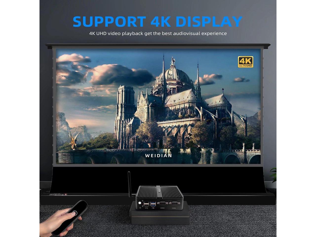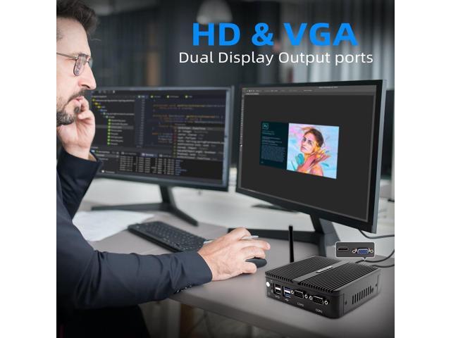 - [(4K Dual-Screen + Auto Power-On)] This fanless mini PC supports dual independent displays via HD & VGA