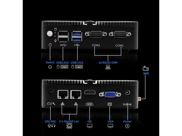 - [(Dual-Band WiFi + Dual Gigabit Ethernet)] Industrial mini PC with 2.4/5GHz dual-band WiFi, Bluetooth, dual Gigabit RJ45 ports, 2x USB 3.0, 2x USB 2.0, dual RS232 COM ports, and a 3.5mm audio jack. Supports seamless connectivity to peripherals (mice, headsets, speakers) and integration with servers, surveillance systems, office devices, displays, projectors, and TVs. Engineered for reliability in industrial automation, smart offices, and multimedia environments.