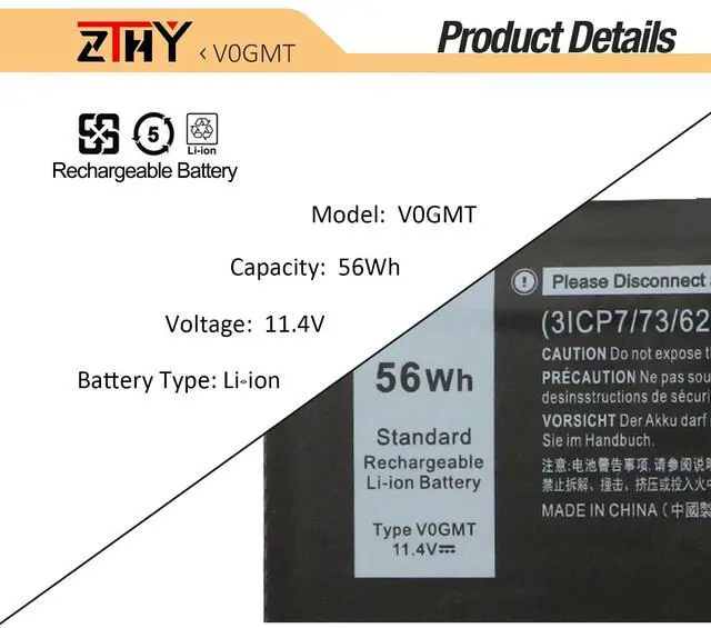 Attention: There are 2 different models V0GMT (11.4V 56Wh 3-Cell) & 4K1VM (11.4V 97Wh 6-Cell) for these laptops, they come in different sizes. In order to let you purchase the right battery, we strongly urge you to open the back cover of your laptop and make sure that the battery model you need is V0GMT (11.4V 56Wh 3-Cell)