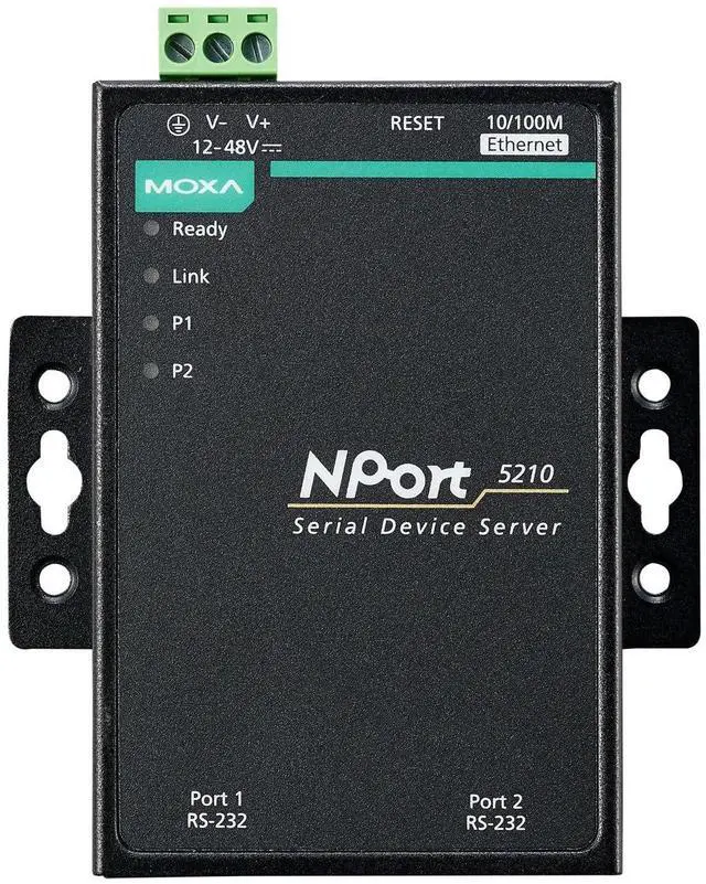 • MOXA NPort 5210 w/Adapter 2 Port Serial Device Server, 10/100M Ethernet, RS-232, RJ45 8pin, 15KV ESD, 110V or 230V