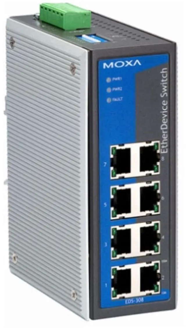 MOXA EDS-308 8-Port Unmanaged Industrial Ethernet Switch, 8 x 10/100BaseTX Ports, Smart Relay Output Alarm