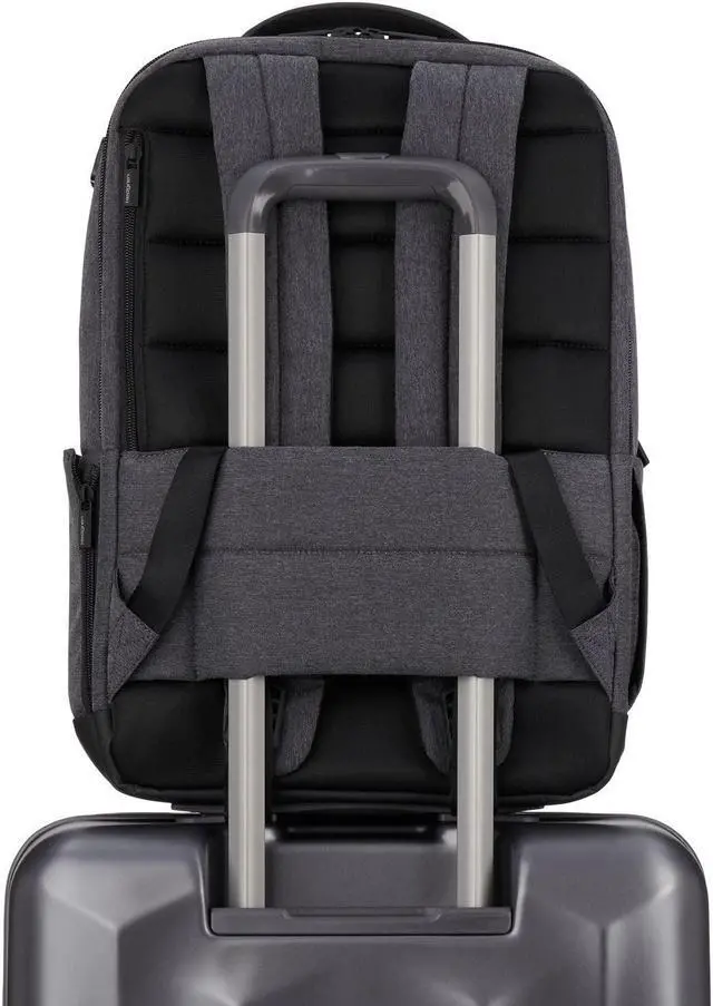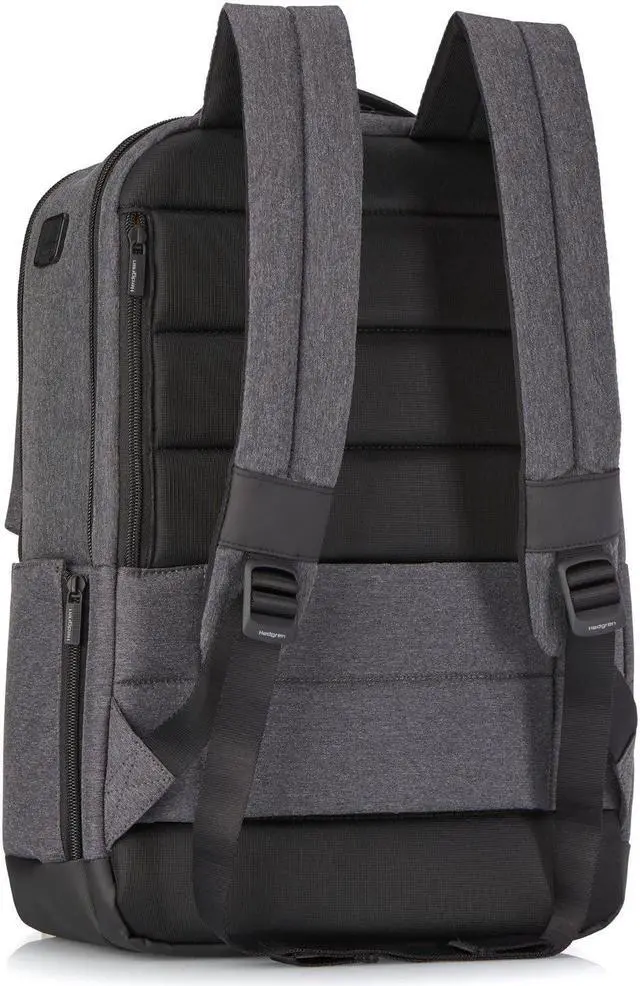 Functional has never felt so comfortable! The Script backpack manages to combine soft padded handles and convenient compartments with pockets for just about every business need. With spaces for your phone, tablet, laptop, water bottle and cards, you can find everything you need in an instant. Featuring our innovative smart sleeve design, keeping your bag close while travelling, as well as a sneaky USB port to ensure you are always fully charged, this bag is just perfect for the professional businessman. It looks good too, with a water repellent coating, stylish zip pulls and our traditional Hedgren logo.