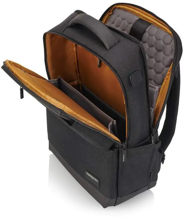 Functional has never felt so comfortable! The Script backpack manages to combine soft padded handles and convenient compartments with pockets for just about every business need. With spaces for your phone, tablet, laptop, water bottle and cards, you can find everything you need in an instant. Featuring our innovative smart sleeve design, keeping your bag close while travelling, as well as a sneaky USB port to ensure you are always fully charged, this bag is just perfect for the professional businessman. It looks good too, with a water repellent coating, stylish zip pulls and our traditional Hedgren logo.