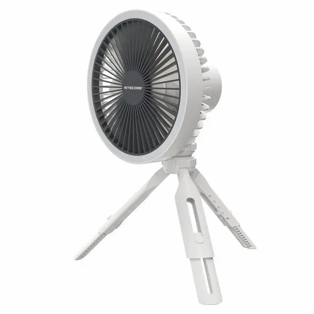 With a brushless motor, the NITECORE NEF10 Multifunctional Electric Fan has a minimal noise. Equipped the built-in 10, 000mAh large capacity Li-ion battery, it can provide a max runtime of 27h. It only takes 4.5 h to fully charge the NEF10. 5-length adjustable legs can be tilted to the desired angle, making the NEF10 suitable for various terrains. The LED Ring Light has 3 brightness levels to adjust with a max runtime of 100h. ^^ 360
