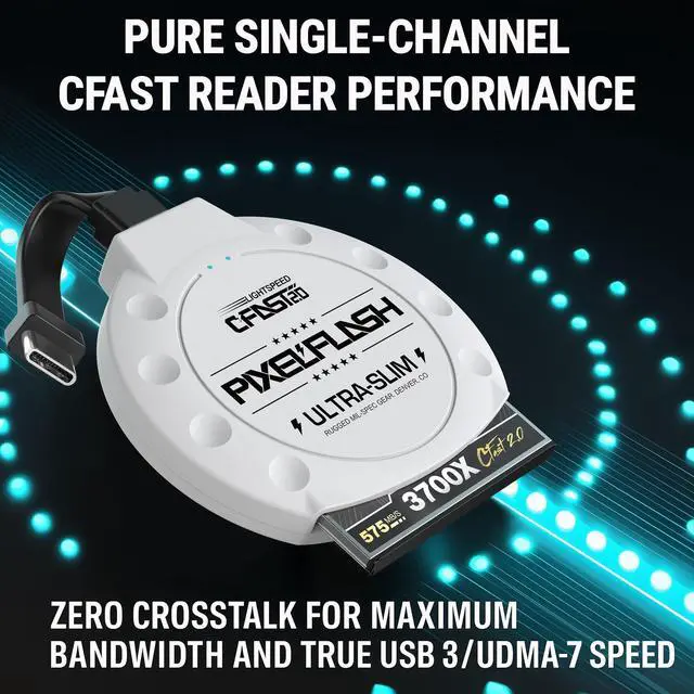 CARDS: Supports CFast 2.0 and 1.0 memory cards, including PixelFlash, Lexar, SanDisk, Sony, and ProGrade, ensuring flawless performance for professional camera systems. Not compatible with CompactFlash (CF) cards. ^^ BLISTERING 10GBPS TRANSFERS WITH