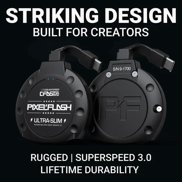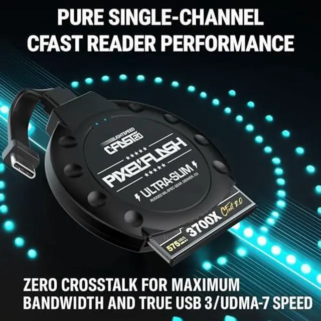 CARDS: Supports CFast 2.0 and 1.0 memory cards, including PixelFlash, Lexar, SanDisk, Sony, and ProGrade, ensuring flawless performance for professional camera systems. Not compatible with CompactFlash (CF) cards. ^^ BLISTERING 10GBPS TRANSFERS WITH
