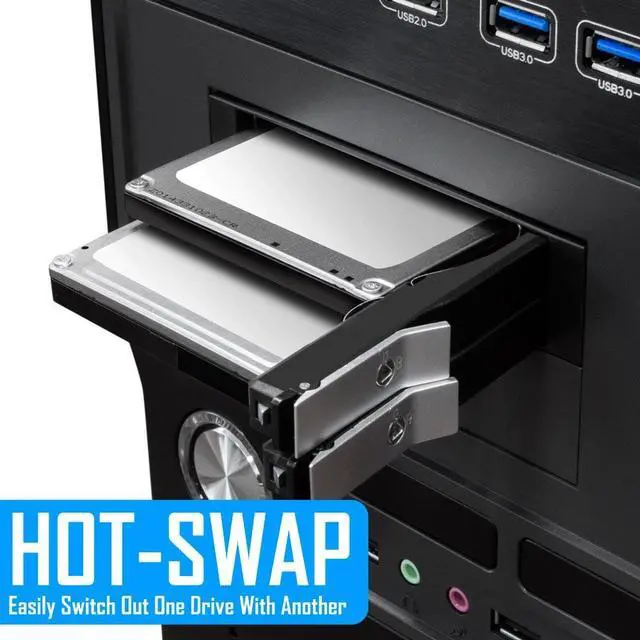 DELIVER PEAK PERFORMANCE - Our hard drive mobile rack enclosure supports SATA I/II/III & SAS I/II, the patented non-scratch SATA connector provide up to 50k insertion rate and can delivers up to 6Gbps speed for maximum performance. Theres also LED indicators to indicate power & hdd activity. ^^ HOT SWAP CAPABILITY - The Kingwin mobile rack hard drive enclosure enables you to hot swap two 2.5 SSD/HDD drives using one of your open 3.5 floppy drive bay. Our mobile rack is designed to provide trouble free Insertion, improved drive mechanism, ensure a sturdy connection, and provide easy mobility for your hard drives.
