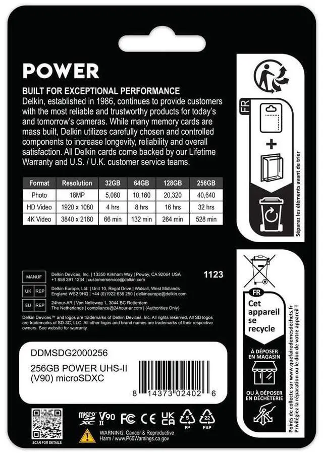 Plus, it is backed by Delkins 48-Hour Replacement Guarantee and Lifetime Warranty to ensure your peace of mind. Whether youre a professional photographer, videographer, content creator, or advanced enthusiast, Delkin's micro SD cards are your perfect partner for capturing and preserving high-quality content with confidence and efficiency. Available as a 64GB micro SD Card, 128GB micro SD Card, and 256GB micro SD Card.