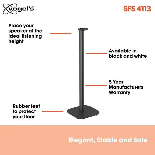 The Sonos speaker stand for Era 100 from Vogel's is the ideal way to enhance your listening experience without drilling holes in your walls. This 82-cm stand positions your speaker perfectly at ear level. The sleek and unobtrusive design has a sturdy base and has been acoustically tested for optimised sound. The cable management system keeps cords out of sight so you can get the most out of your Sonos without detracting from your interior.