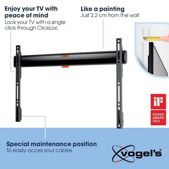 FRAMED LIKE A PAINTING: Give your room a sleek, modern look with only 0.9 inches of separation between your TV and the wall. Achieve a minimalist aesthetic and secure your TV with a single, convenient click through ClickLoc technology.