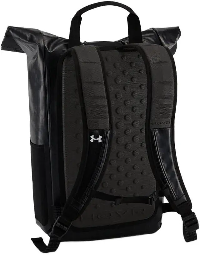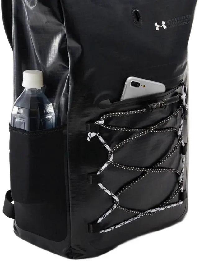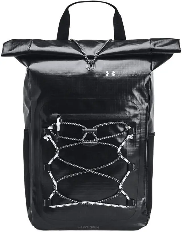 DescriptionUA Storm technology delivers an element-battling, highly water-repellent finish LEVELED strap system guides you to assure straps are adjusted evenly for balanced weight distribution Padded, breathable air mesh back panel & shoulder straps for ultimate comfort Rolltop design with internal magnet & bungee strap closures Front zippered valuables pocket & 2 side water bottle pockets Adjustable front bungee for easily stashing a jacket, pair of shoes or ball Main body fabric contains at least 90% recycled polyester, excluding trims & embellishments Uses a fluorine-free water repellent treatment THIS ITEM IS NOT INTENDED FOR USE BY CHILDREN 12 AND UNDER