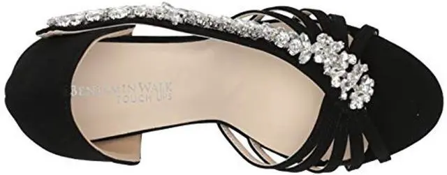 Delaney from Touch Ups is a great strappy sandal with as jeweled ornament and a 2.5 inch heel. This style is made with a high quality lamy material and features a synthetic rubber sole.