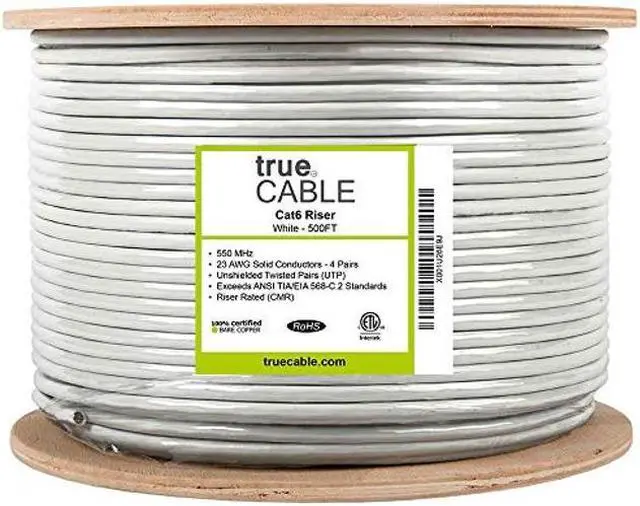 Cable Construction: - Riser Rated PVC Jacket (CMR) - Polyethylene Insulation (PE)
