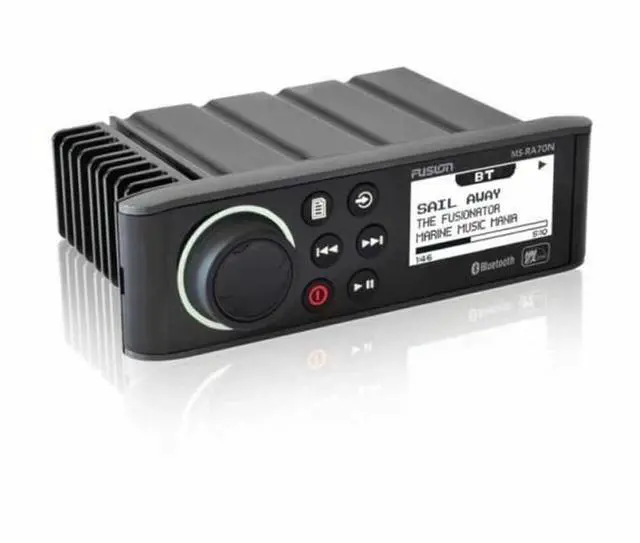 Introducing the MS-RA70N, FUSIONs sleekest value-packed marine stereo, designed to deliver a quality on-water entertainment experience by incorporating some of the latest marine technologies. Engineered to seamlessly replace any standard DIN sized non-marinised stereo without the need to reconfigure dash space. Clever styling allows an installer the option of either mounting the stereo with a conventional dash finish or an option to integrate into a glass helm with a flush surface mount, ensuring a high-end installation. Now with added support for FUSION-Link Lite via ANT for Garmin Smart Watch control.