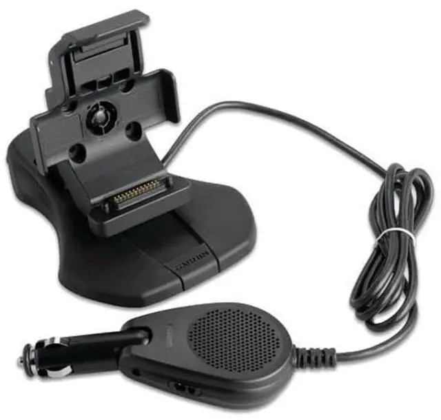 GARMIN 010-11025-01 Auto Mount. This automotive mount has an integrated vehicle power cable and external speaker for audible turn by turn directions.