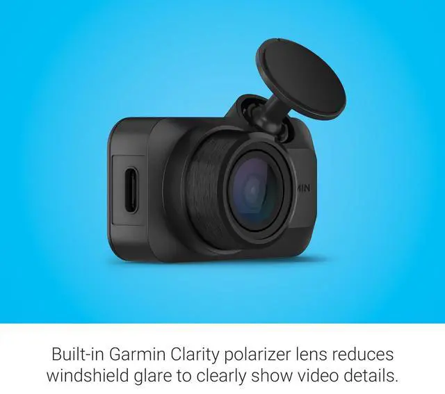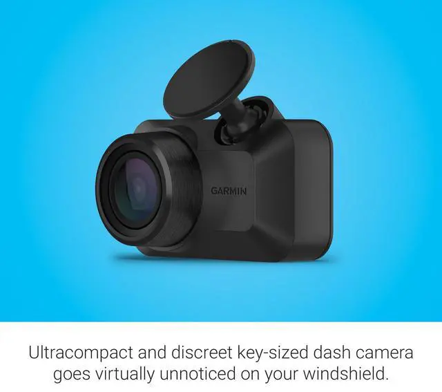 Stay in the clear with the voice-controlled Garmin Dash Cam Mini 3 dash camera. This ultracompact key-sized dash cam automatically records high-definition 1080p video with a wide 140-degree field of view and even saves video of detected incidents. The built-in Garmin Clarity polarizer reduces windshield glare for a clear view. Plus, Garmin Clarity HDR optics enable the camera to capture crisp details, day and night. With a paid Vault subscription and an active Wi-Fi network connection, the secure online Vault automatically stores important saved video clips so you can easily view and share with the Garmin Drive smartphone app.