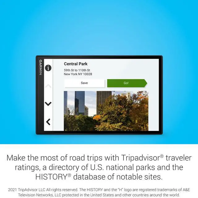 Simplify your drive with the Garmin DriveSmart 86 GPS navigator. Use Garmin voice assist to easily find and navigate where you want to go. The crisp 8 dual-orientation display and map updates of North America show you the way, providing alerts for speed changes and potential hazards ahead. Make the most of road trips with Tripadvisor traveler ratings, a directory of U. S. national parks and the HISTORY database of notable sites. Pair with the Garmin Drive app running on your compatible smartphone for on-screen access to live traffic, fuel prices, parking, weather and traffic cams to help avoid delays and keep you on your way.