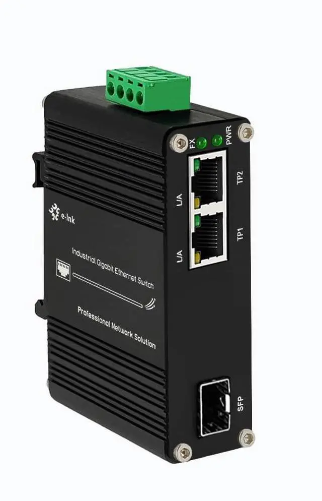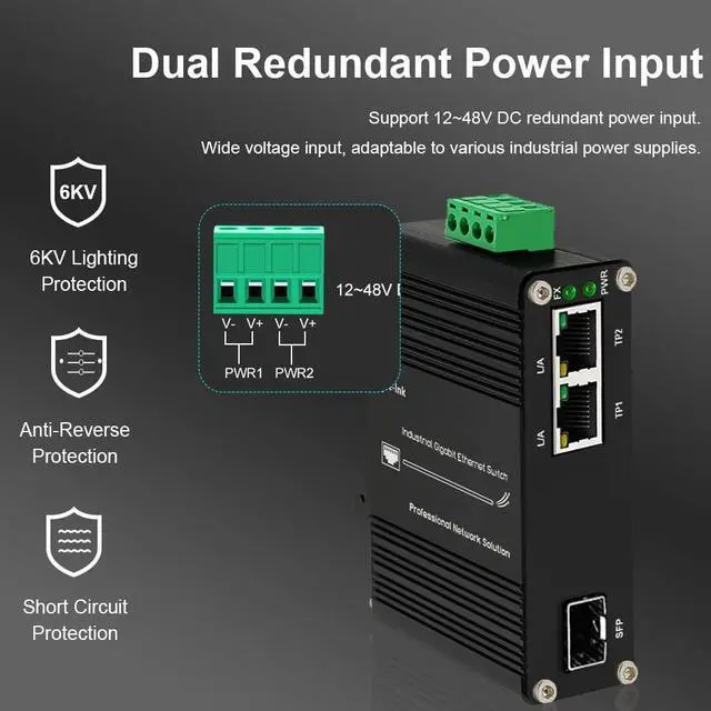 Mini Industrial 2 Ports Gigabit Ethernet Switch Din Rail Mount Hardened 2 * 10/100/1000Mbps Ethernet to Fiber Optic Converter 100/1000Base-X Auto Sensing 12-48V DC