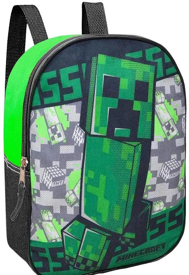 This Minecraft school bag set includes one 11 inch backpack with adjustable shoulder straps and top loop for hanging, depicting colorful artwork from Minecraft. Show off your love of Minecraft in style! This backpack is the perfect size for your preschool or pre-k student to take to school and carry everything they need. Age 3+. Show off your love of Minecraft in style! This backpack is the perfect size for your preschool or pre-k student to take to school and carry everything they need. 11 x 10 x 3 inches.