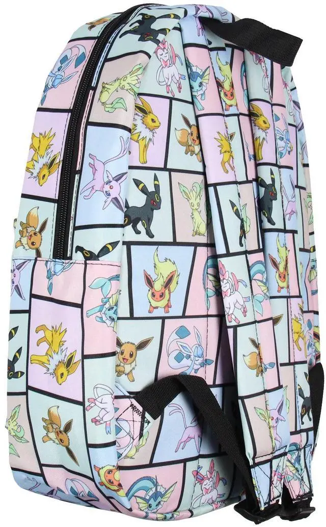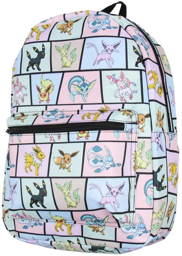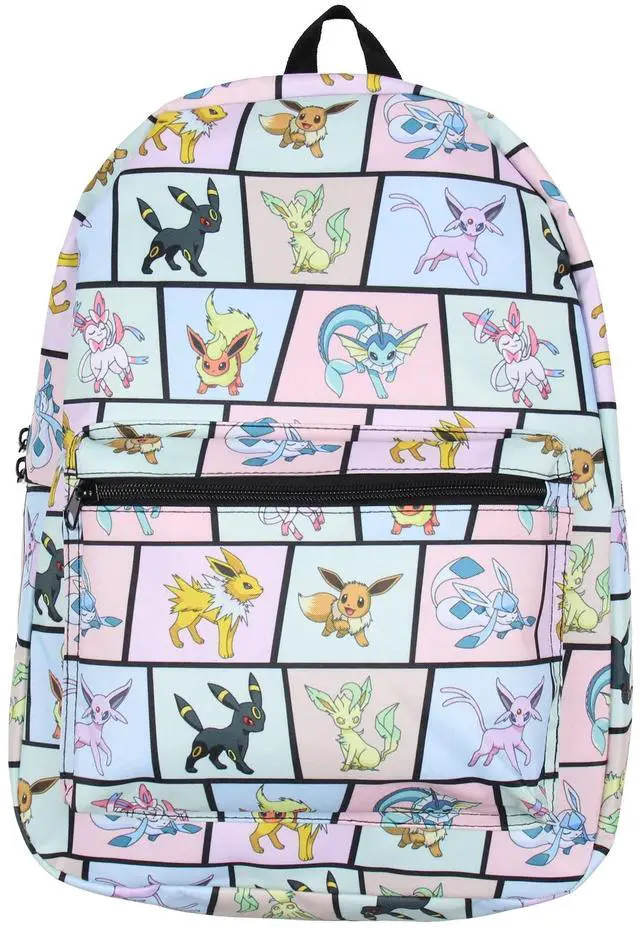 POKEMON MERCHANDISE - This Eevee Backpack is a guaranteed Pokemon product manufactured by one of the world's largest pop funure retail designers, Bioworld. ^^ DETAILED ALLOVER PATTERN - This Eevee backpack features an allover design of all Eevee's different evolutions like Vaporeon, Flareon, Glaceon, Jolteon, Sylveon, Leafeon, Espeon, and Umbreon. ^^ OUTER FEATURES - The backpack has 1 outer zipper closure pocket that is great for utensils like pens, pencils calculators and more. Easy-carry top handle and adjustable padded shoulder straps ^^ MAIN COMPARTMENT - The main compartment features a padded laptop pocket and a padded back great for storing valuable electronics like tablets, phones, and personal laptop computers.