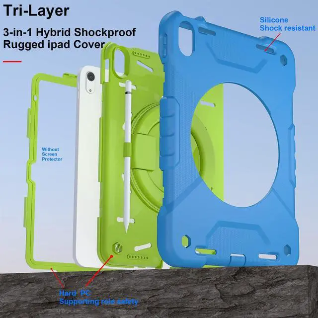 [(3-Layer Heavy Duty Protection)] : iPad 10th case is made of durable hard PC + silicone, 3-layer full body protection structure provides perfect protection. 4 Corners Shock Absorption and Drop Protection - Protects your iPad 10. 9 inch case 2022 against scratches and accidental drops, bumps and impacts.
