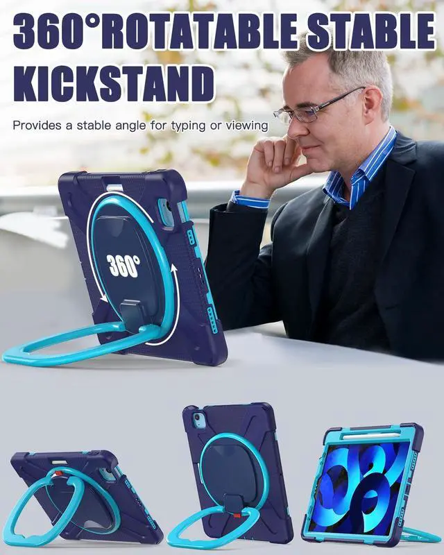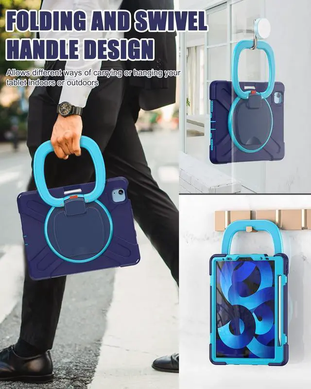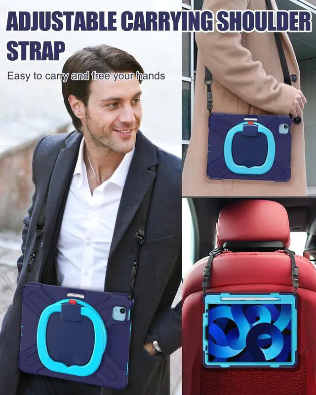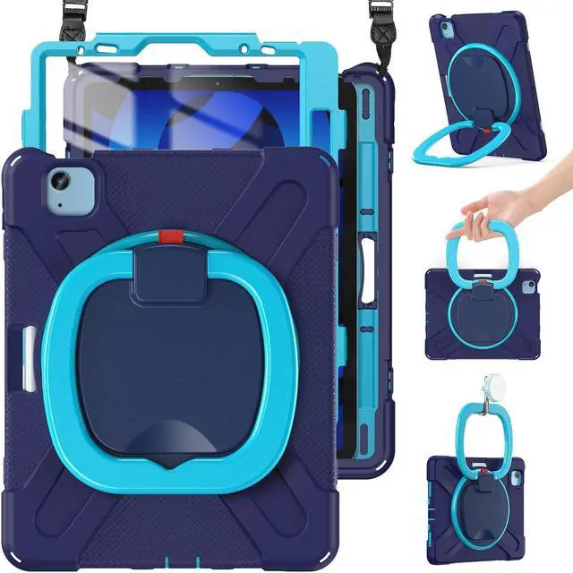 BRAECN Case for iPad Air 11 Inch M3/M2 (2025/2024), iPad Air 7th/6th/5th/4th Gen Case 10.9 Inch, Silicone Cover w/Screen Protector, Kickstand, Pencil Holder, Handle Grip & Shoulder Strap, Navy Blue