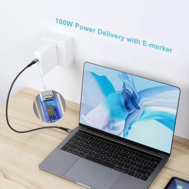 [(100W Power Delivery)] With E-marker chip inside, this USB C to USB C cable offers rapid charge up to 20V/5A (max). Your new 87W 15" MacBook Pro at full speed. Besides, it supports Quick charge QC 3.0 and PD rapid charging (with PD charger). NOTE: Please confirm that your mobile phones will support PD fast charge protocol.