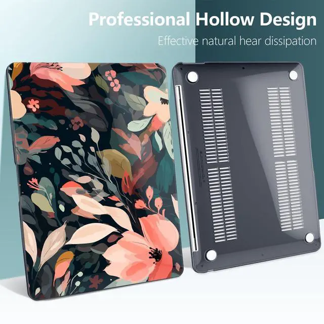 DONGKE Compatible with MacBook Air 13 inch Case 2021 2020 2019 2018 Release A2337 M1 A2179 A1932 with Retina Display & Touch ID, Plastic Hard Shell & Keyboard Cover - Painted Florals