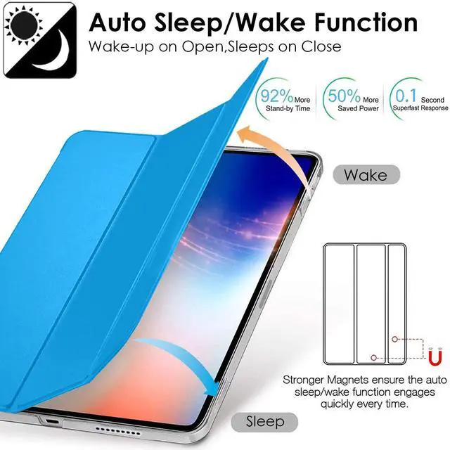 [Smart Auto Sleep/Wake Function] Easy snap on & off Magnet securely keeps the case closed firmly on the iPad screen when you close the cover adding even more protection to your iPad.