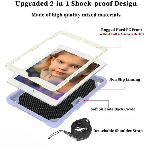 Exclusively 2 in 1 Design: This case for iPad 9th Generation is made of Premium Soft silicone rubber and hybrid hard PC + front hard PC bumper, easier to install and remove, withstands daily drop, bump and shock with four protection corner cushioning, perfect for Kids. (WITHOUT built-in Screen Protector)