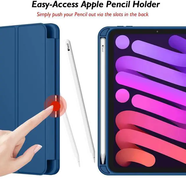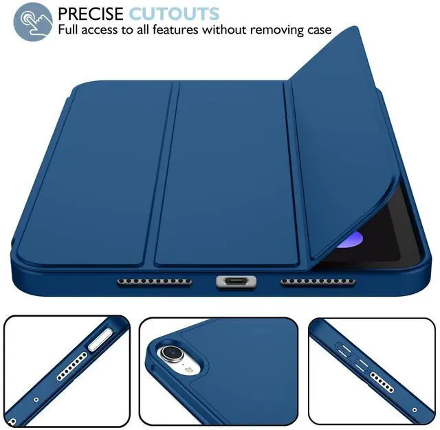 iMieet iPad Mini 7 Case 2024 (A17 Pro), iPad Mini 6 Case ( 8.3 -Inch, 2021 Model), iPad Mini 7th/6th Generation Case with Pencil Holder, Trifold Stand Smart Case with Soft TPU Back, Navy Blue