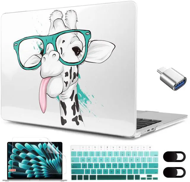 MEEgoodo for M4/M3/M2 MacBook Air 15.3 inch Case 2025 2024 2023, Case Fit Model (A3241/A3114/A2941) for MacBook Air 15 inch, Laptop Hard Shell with Keyboard Cover, Funny Giraffe