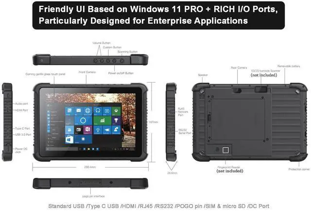 WINDOWS BASED ENTERPRISE MOBILITY -- This mobile computer comes with pre-installed Windows 11 PRO OS (64-bit) which provides friendly user interface for enterprise users. The 8GB RAM + 128GB SSD Memory + expandable memory up to 512GB provides sufficient storage space for enterprise field work. Support OTG mode. You can switch between Tablet mode & PC mode easily.