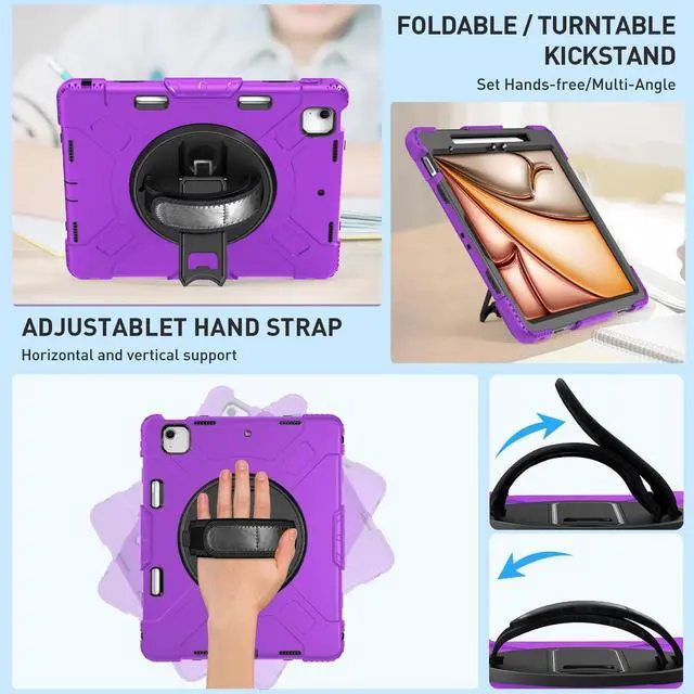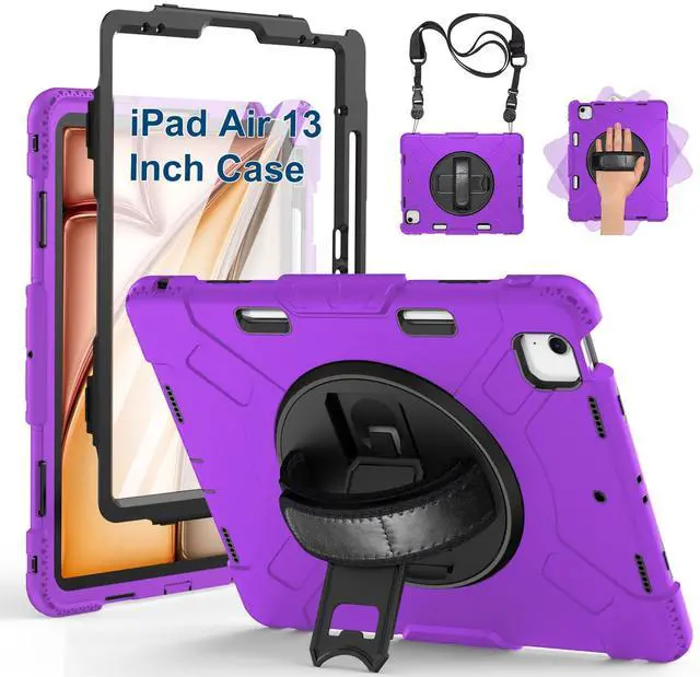 SUPFIVES Case for iPad Air 13 Inch 2024,Upgraded Military Shockproof Silicone Cover with Screen Protector+Hand Strap+Shoulder Strap+Rotating Kickstand+Pencil Holder,Purple...