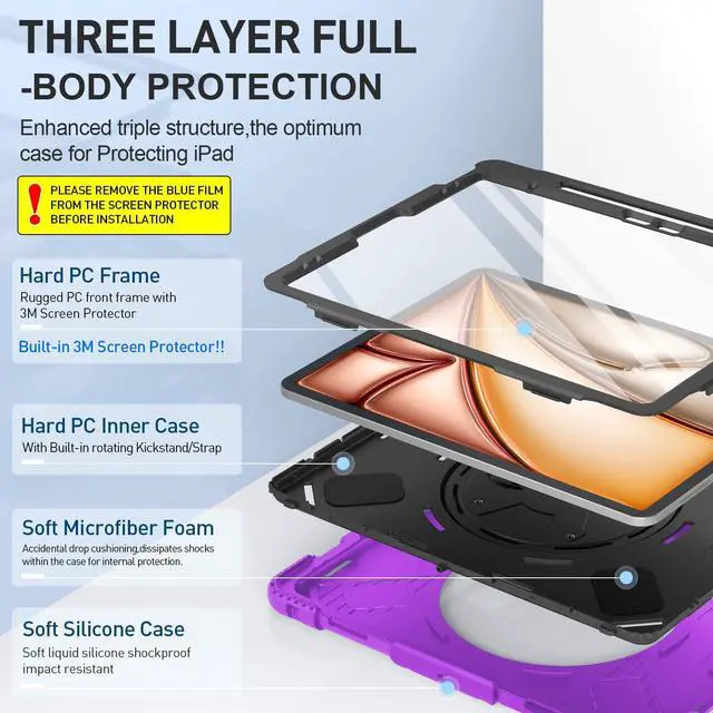 [COMPATIBILITY]Designed for iPad Air 13 inch case 2024 Only (Model: A2898/A2899/A2900).Not for other models,please check the ipad model before purchasing