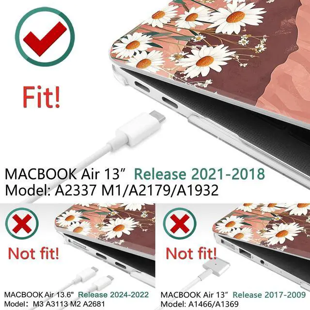 Compatibility -- Exclusively designed for MacBook Air 13-inch with Retina Display and Touch ID, released in 2021, 2020, 2019, and 2018 (Models: A2337 M1, A2179, A1932 - MGN63LL/A, MGND3LL/A, MGN93LL/A, MGN73LL/A, MGNE3LL/A, MGNA3LL/A, MWTJ2LL/A, MVH22LL/A, MWTL2LL/A, MWTK2LL/A, MVH52LL/A, MVH42LL/A, MVFH2LL/A, MVFM2LL/A, MVFK2LL/A, MVFJ2LL/A, MVFN2LL/A, MVFL2LL/A, MRE82LL/A, MREE2LL/A, MREA2LL/A, MRE92LL/A, MREF2LL/A, MREC2LL/A). WARNING: This case is NOT compatible with other laptop models.