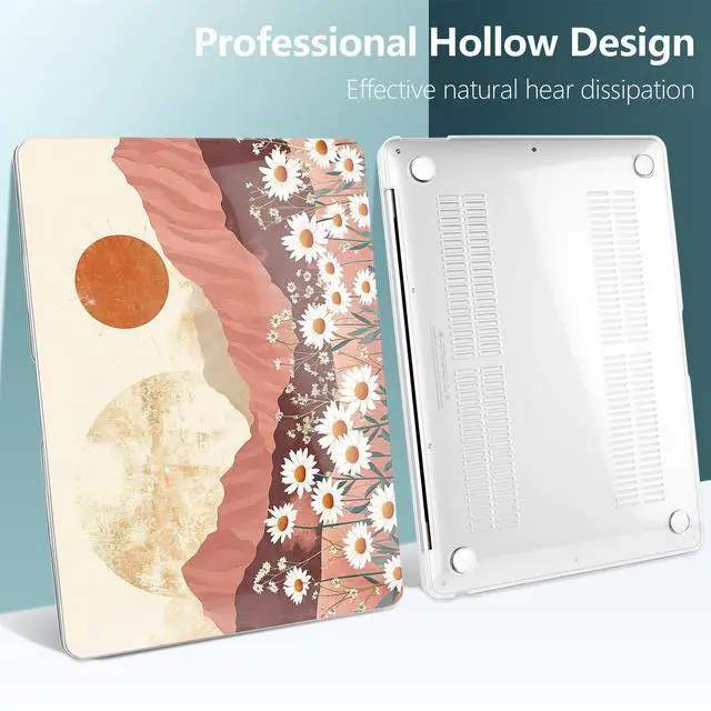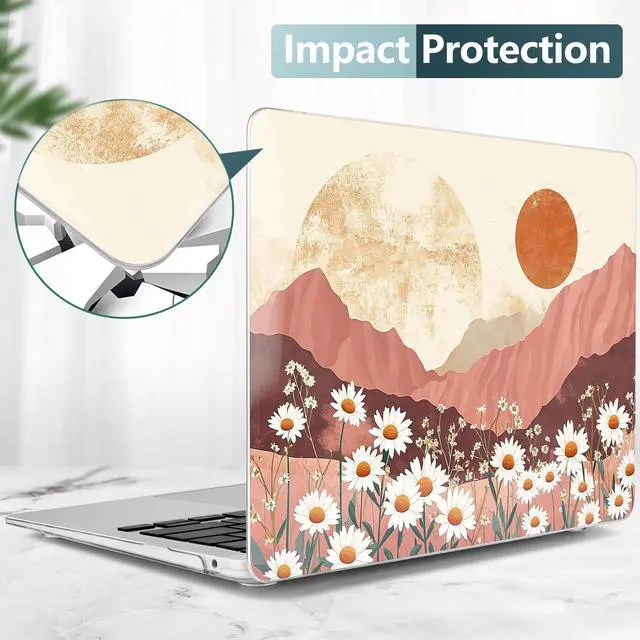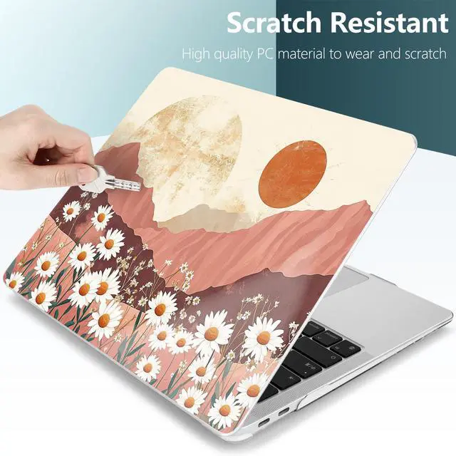 TWOLSKOO for MacBook Air 13.3 inch Case 2021 2020 2019 2018 Release M1 A2337 A2179 A1932 with Touch ID, Plastic Hard Shell Case & Keyboard Cover & Type C Adapter, Mountains & Daisies